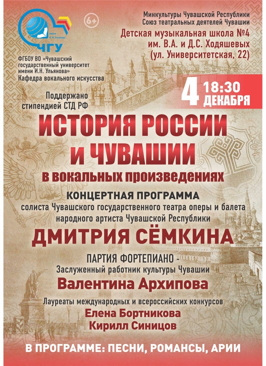 4 декабря новая концертная программа "История России и Чувашии в вокальных произведениях" прозвучит в Детской музыкальной школе им В.А. и Д.С. Ходяшевых.