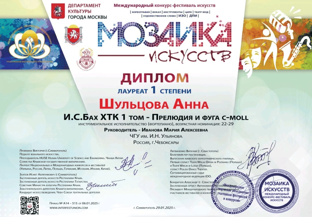 Поздравляем Анну Шульцову - студентку факультета искусств, ставшую Лауреатом 1 степени в Международном конкурсе-фестивале "Мозаика искусств", Лауреатом 1 степени во Всероссийском конкурсе-фестивале искусств "Арт Империя" и Лауреатом 2 степени во Всероссийском конкурсе-фестивале искусств "Траектория таланта" 👏👏👏