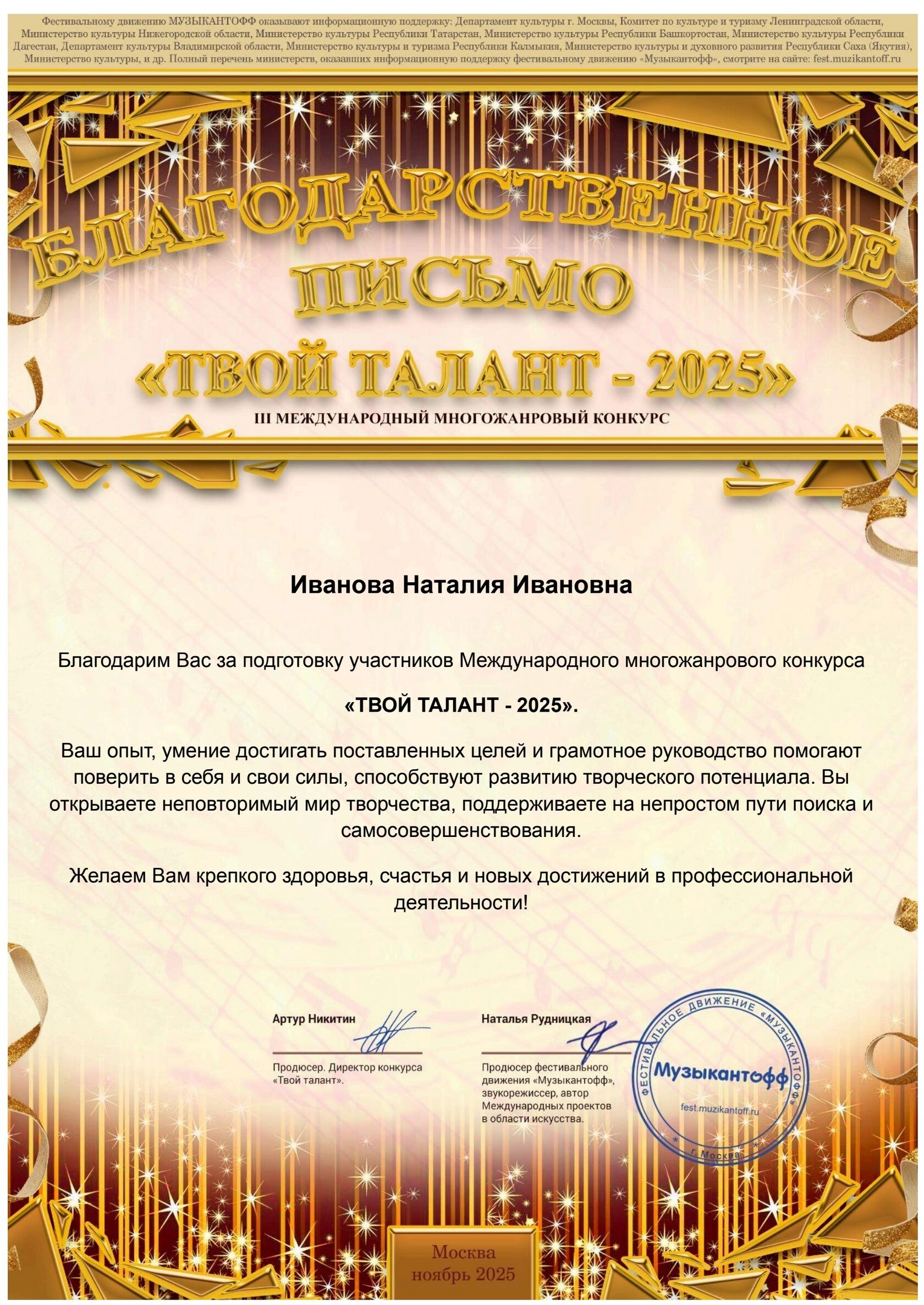 Лауреатство I степени в III Международном многожанровом конкурсе «Твой талант - 2025»