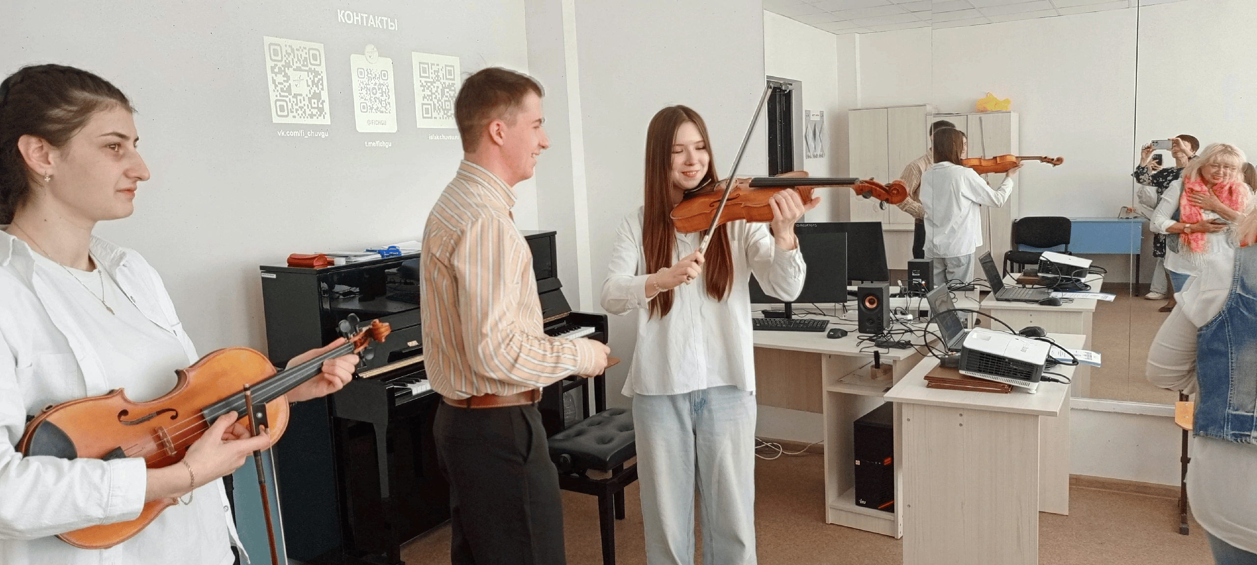 🎻 Для погружения в творческую атмосферу прозвучала концертная программа. Участники: Семенова Ульяна (аккордеон), Хнусян Лиана (скрипка), Соломина Юлия (домра), Кравченко Евдокия (гусли), Лущик Матвей (альт), Коновалова Полина (фортепиано), Синицов Кирилл (вокал). За организацию и проведение мероприятия благодарим преподавателей: Саприко М. С., Данилову И. В., Анисимову Е. О., Ихонькину Г. В., Степанову К. М., Иванову М. А., Егорова О. В., студентов Лохмачеву Ирину, Петрову Дарью, Шульцову Анну, Трончук Викторию.